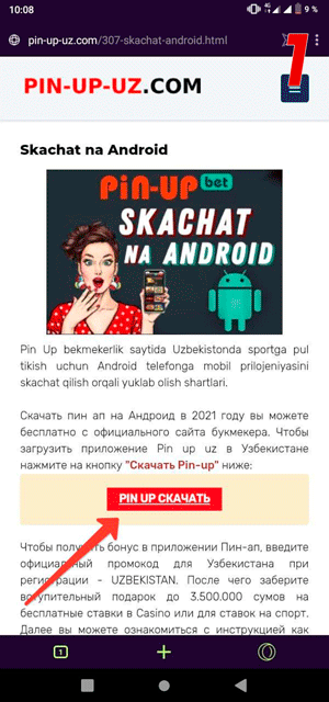 Telefonda pin-upda skachat, o’rnatish va ro’yxatdan o’tish jarayoni 5 daqiqadan ko’proq vaqtni talab qilmaydi. Boshqa xato va savollarning oldini olish uchun quyidagi amallarni bajaring:
